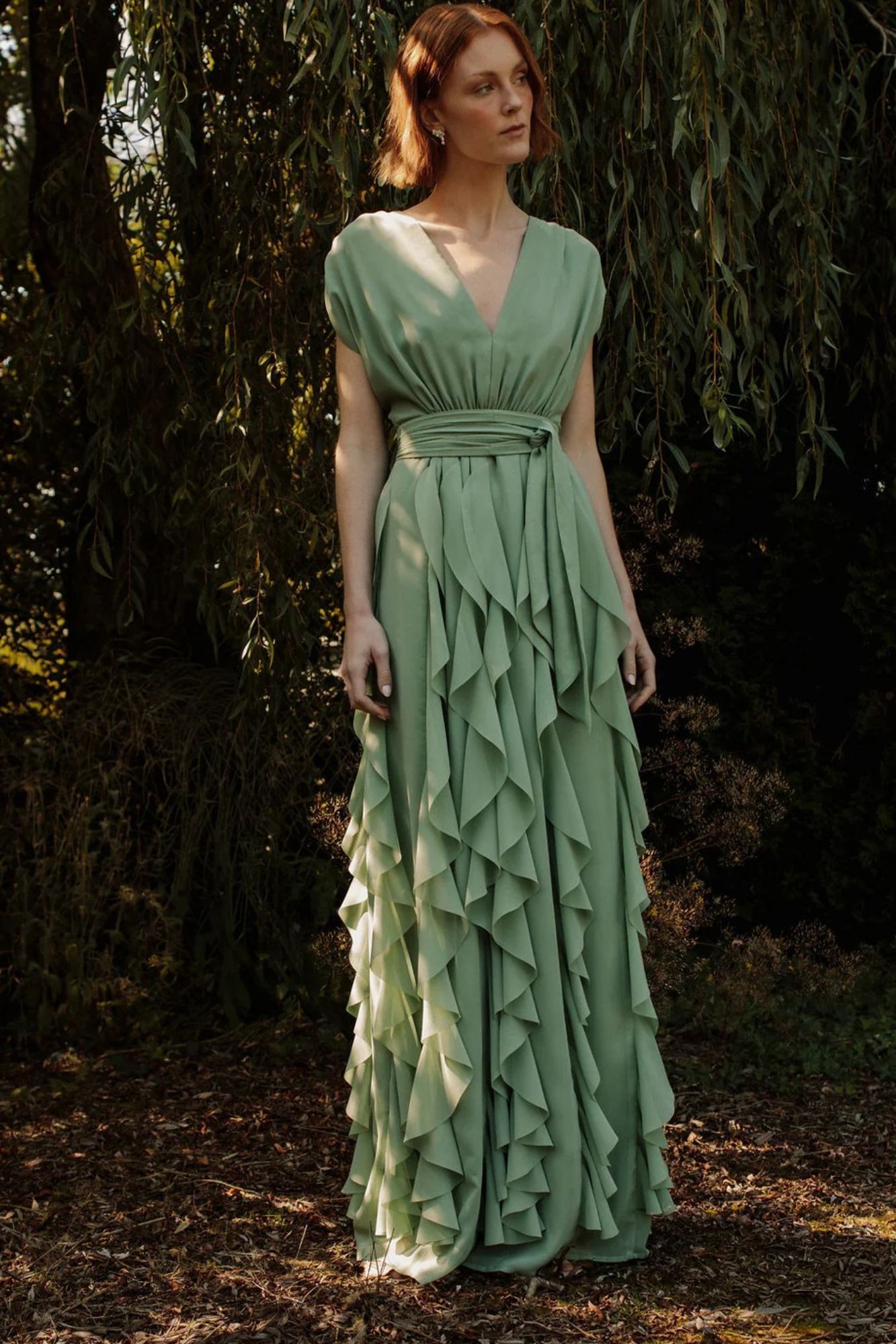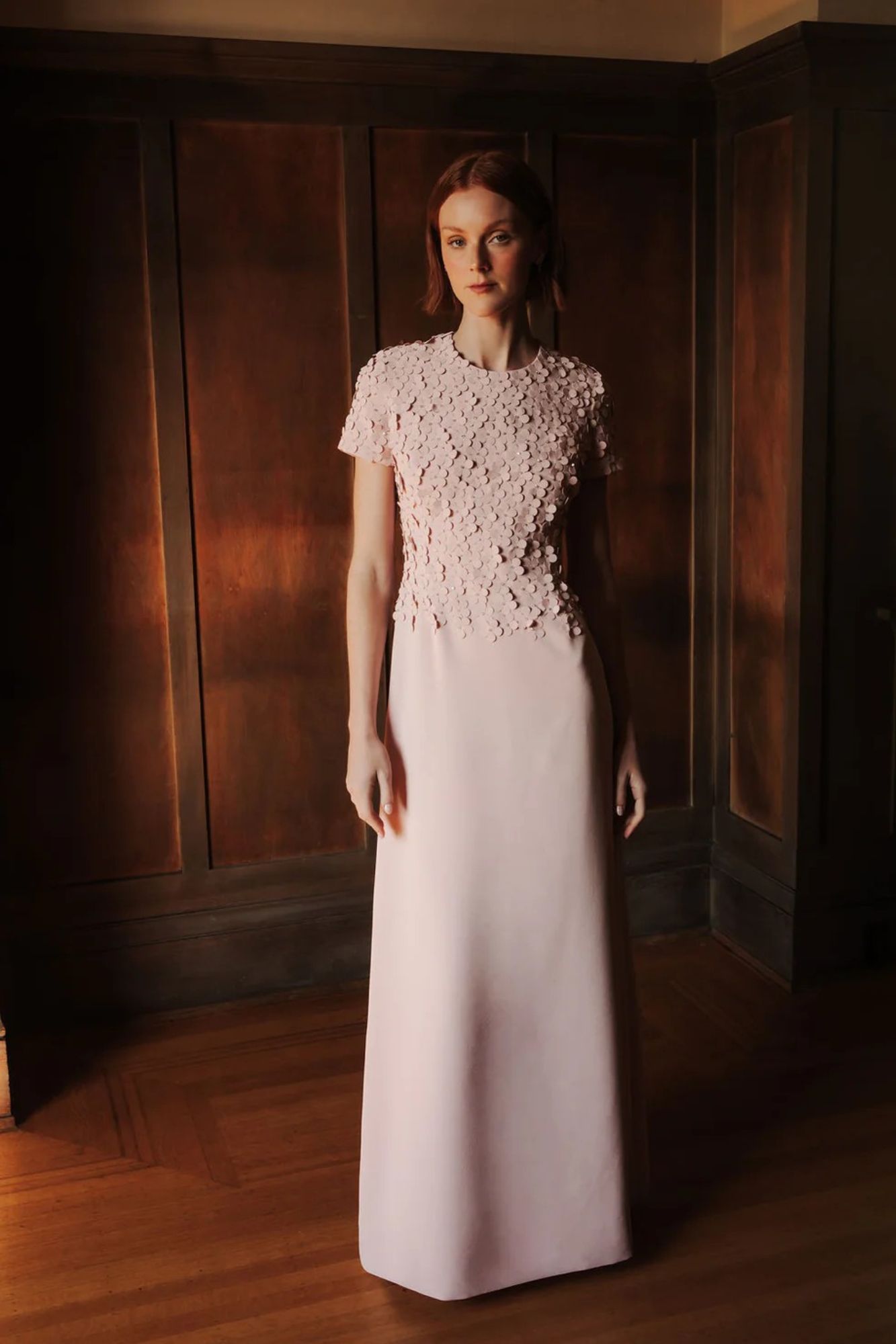 Catherine Regehr is known for her fine attention to detail and use of luxurious couture fabrics. Whether designing separates or ball gowns, her philosophy remains the same—to create elegant shapes that are versatile and timeless, and to be worn over and over again for years. Catherine Regehr offers customization to any piece, please consult with our team for details. Notable celebrities seen wearing Regehr gowns include Kim Basinger, Sela Ward, Bianca Jagger, and Angelica Houston, among others.