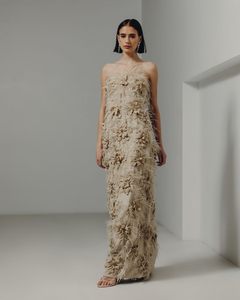 A1: Her gowns combine timeless style, flattering silhouettes, and luxurious fabrics for comfort and elegance.