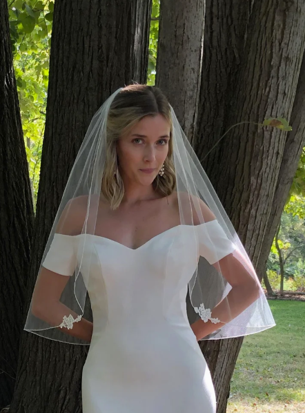 Elbow-length veils hit at or just below the elbow, offering a harmonious balance. They pair beautifully with fitted or A-line dresses and add subtle elegance while keeping movement easy. These veils are especially versatile for brides who want coverage but prefer not to deal with longer lengths during reception activities. They work well with simple gowns as well as those with moderate embellishments, creating a polished look that enhances the gown’s design without overshadowing it.