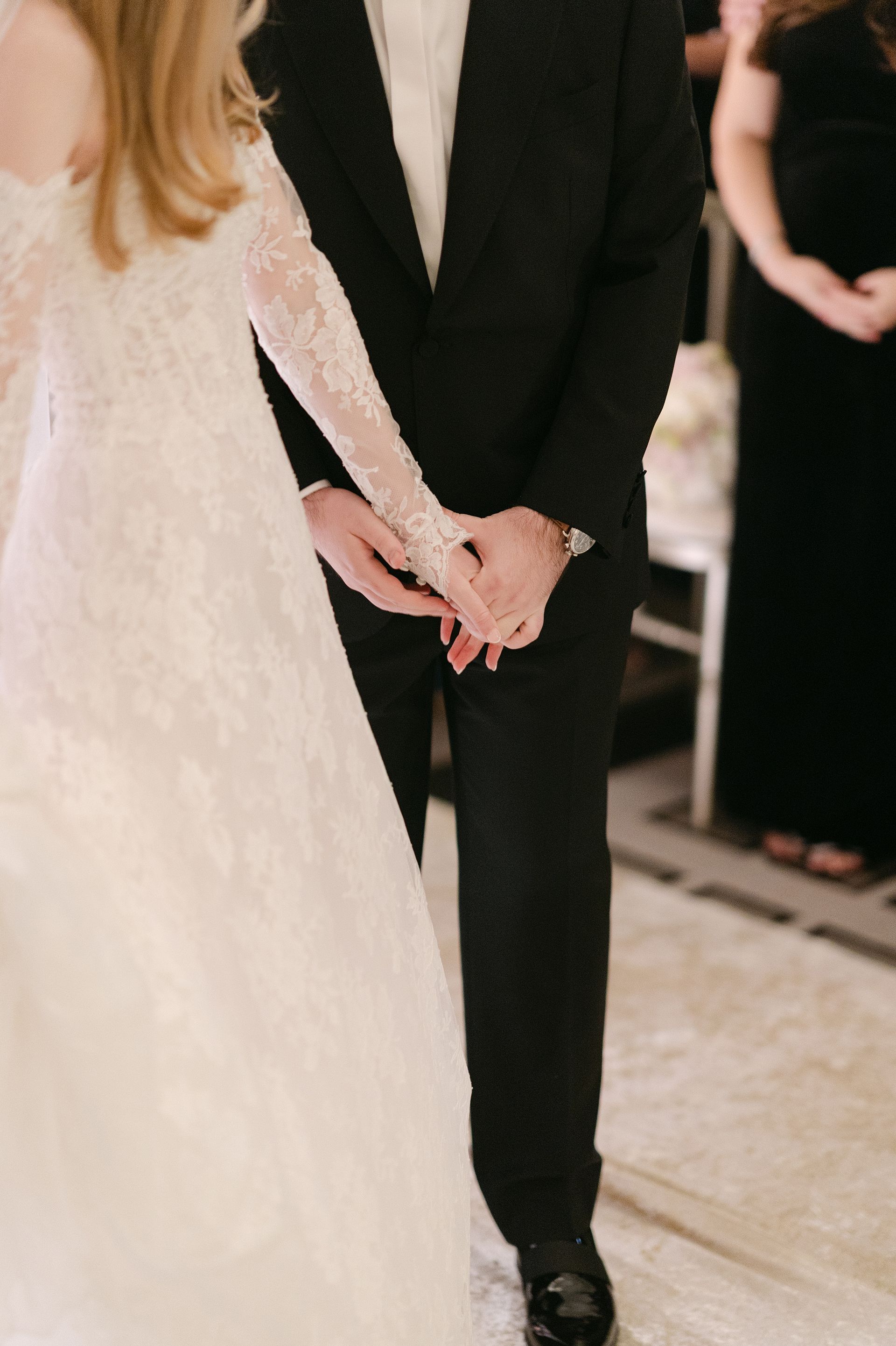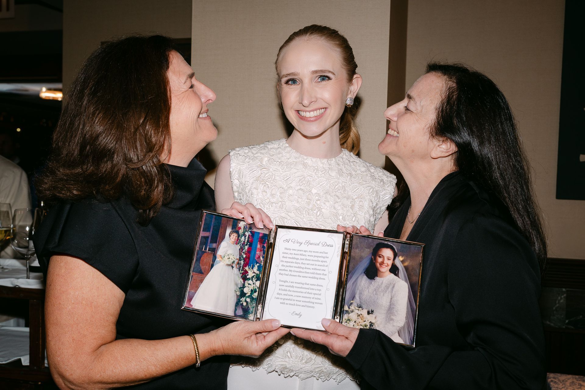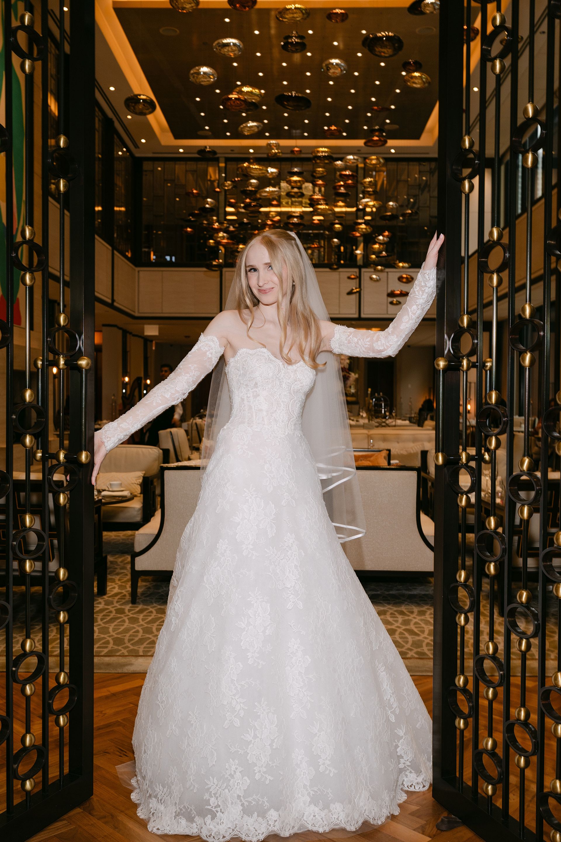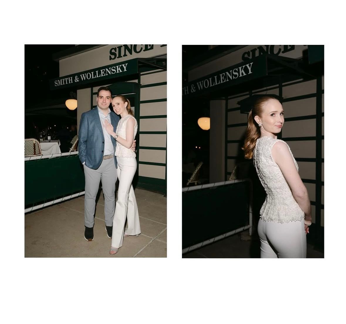 Congratulations to our beautiful bride Emily! Emily’s wedding gown story is unique. She had a family heirloom wedding gown handed down the generations from grandmother to mother to daughter. Our L’elite Atelier was tasked to create a custom piece that would pay homage to her family while allowing Emily to have her own signature personality and style for her wedding. First came the gown, next came a rehearsal dinner shirt. Our Atelier created a custom, one of a kind, with years of legacy, a lace peplum sleeveless top. Made and create for Emily from the wedding gown both her grandmother and mother wore on their wedding day. Her lace top was made with love and in honor to the legacy of the women in her family. Emily was absolutely glowing for her rehearsal dinner, continuing the tradition, while making it her own.