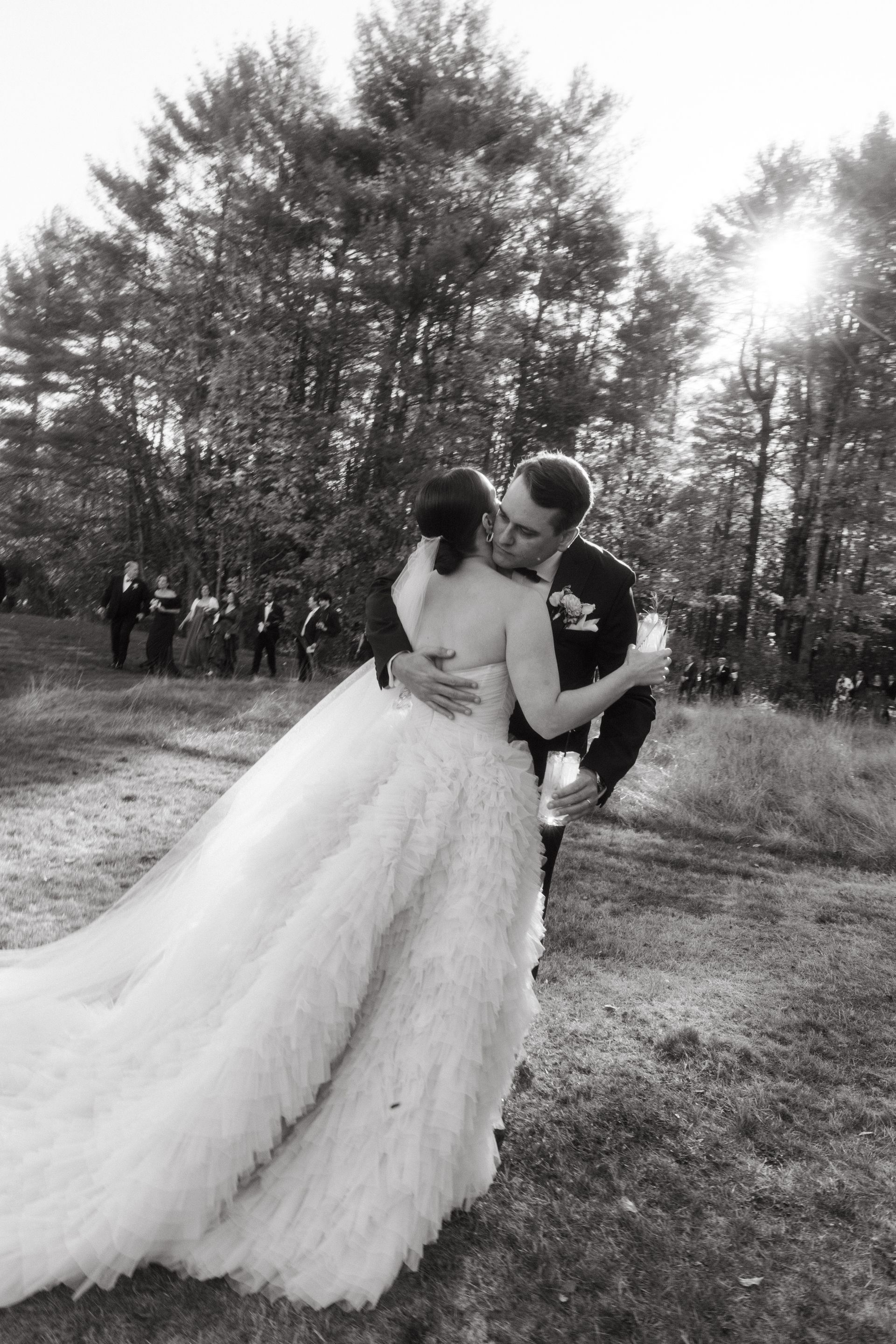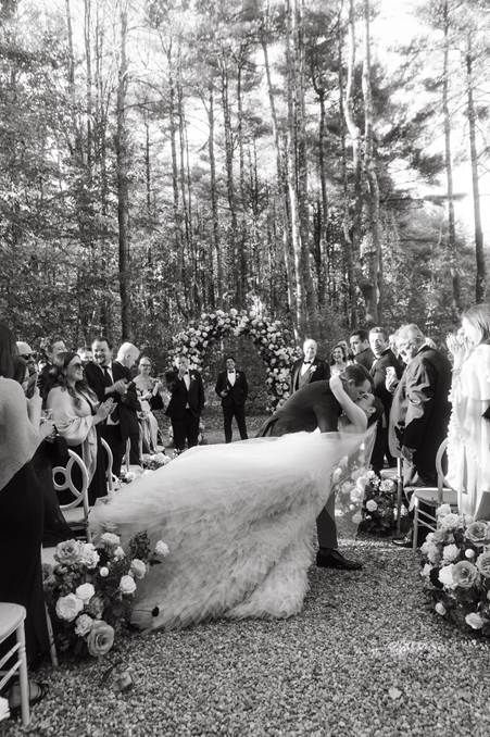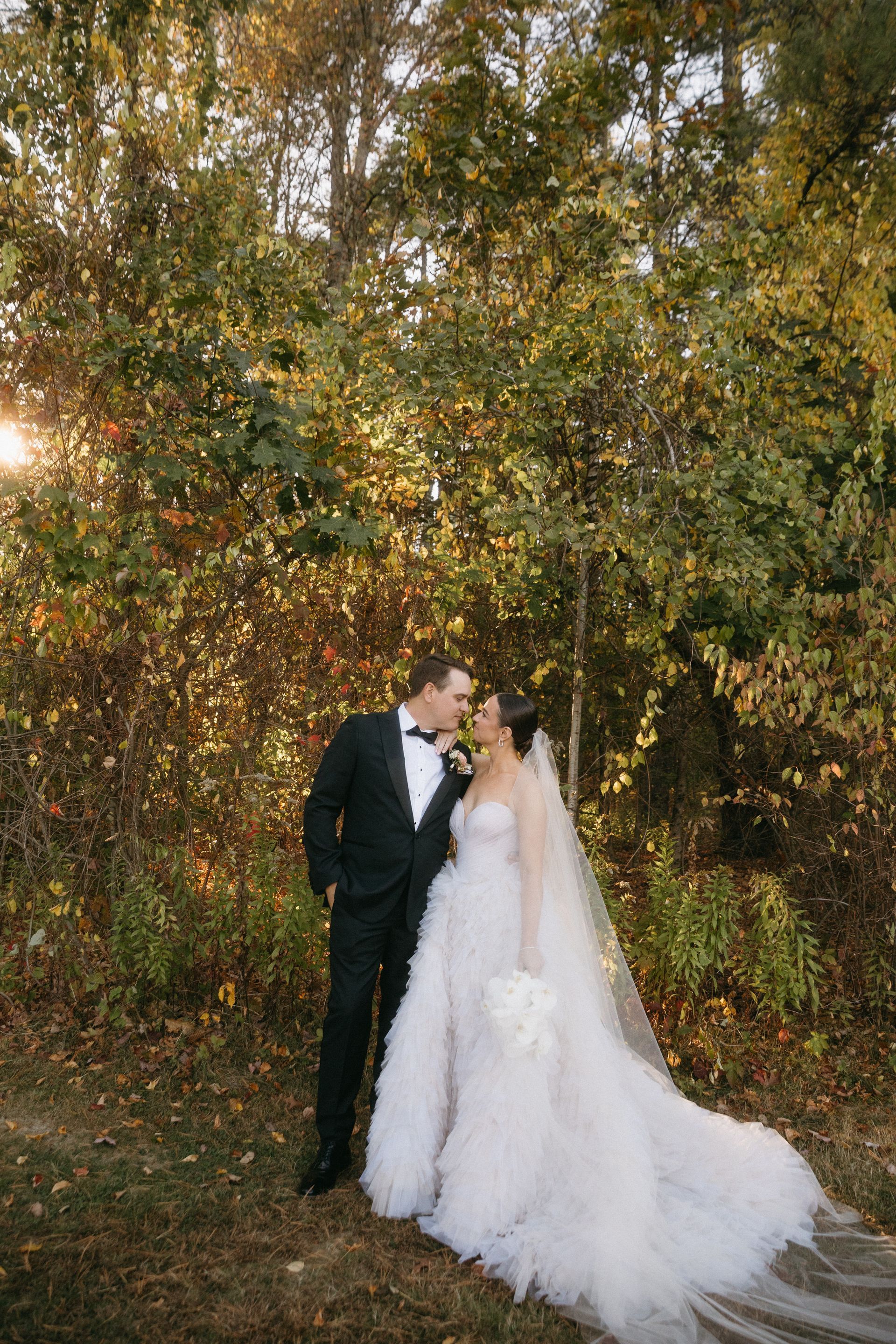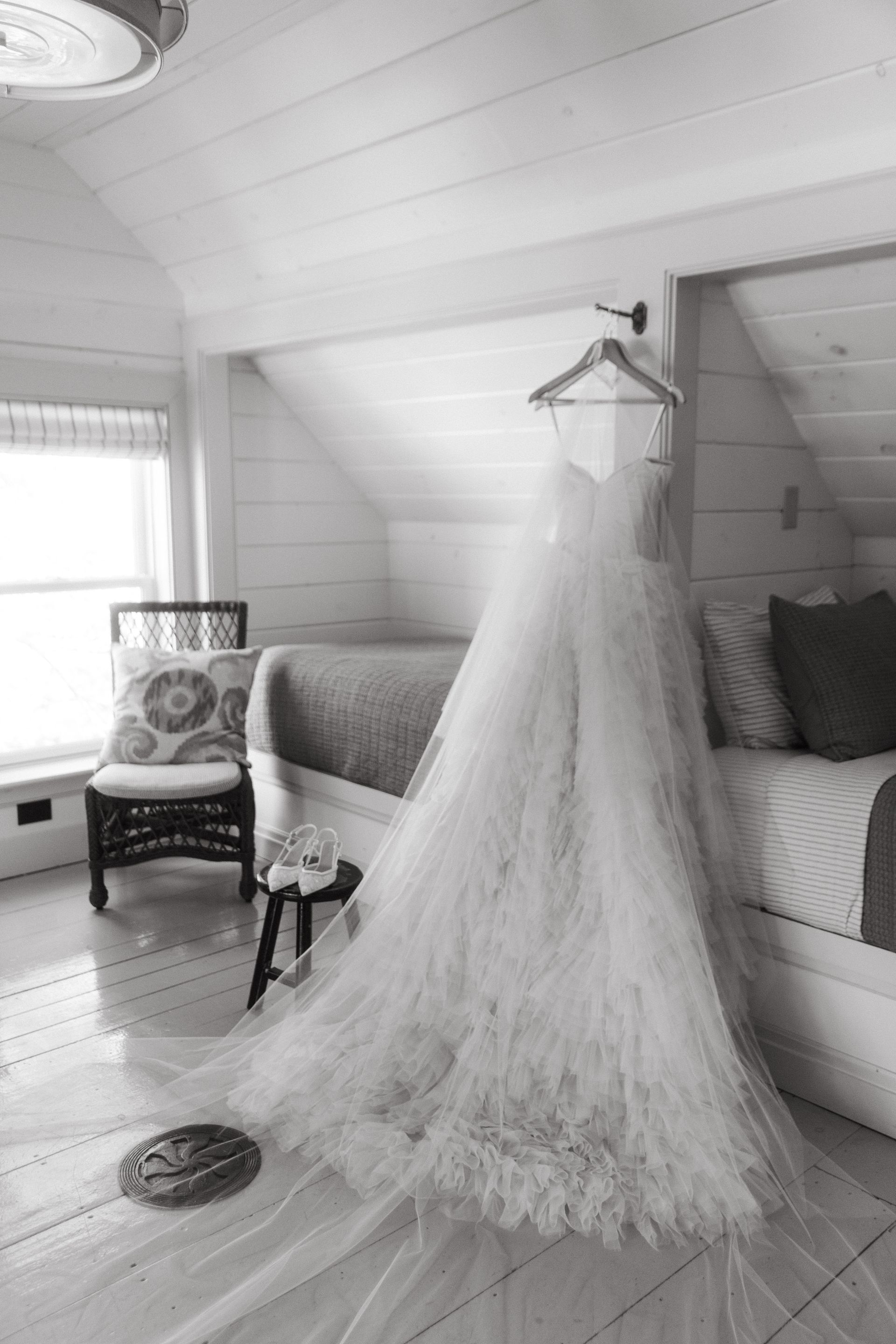 “Serafina” wedding gown, and she paired it with a classic tulle veil to show the drama and beauty of her gown. All images are courtesy of Emily Delamater Photography.
