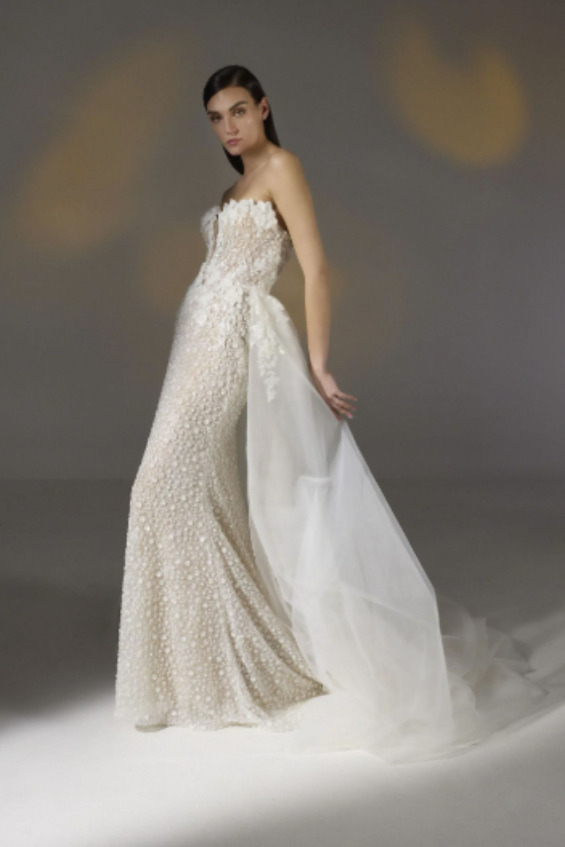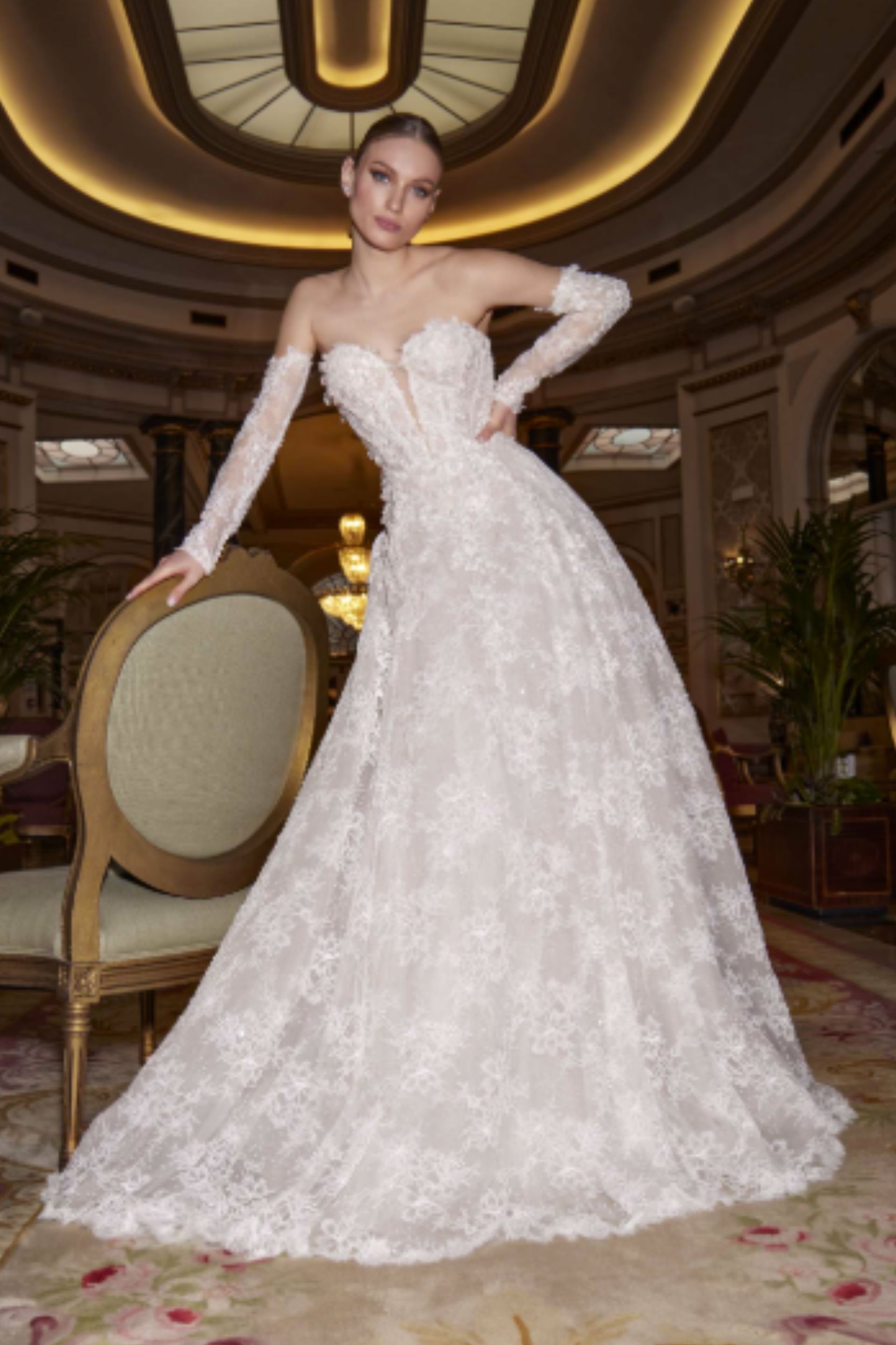 Please note that the images shown are a selection of gowns from the designer's newest collection and do not reflect our entire showroom offering. Please schedule an appointment to view more of the collection.