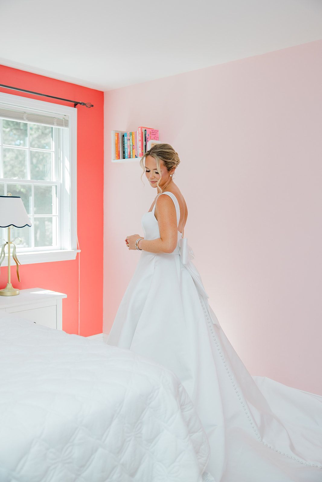 Congratulations to our beautiful bride Alyssa! Alyssa chose the Amsale wedding gown “Helena”, and paired her gown with a satin edge veil.