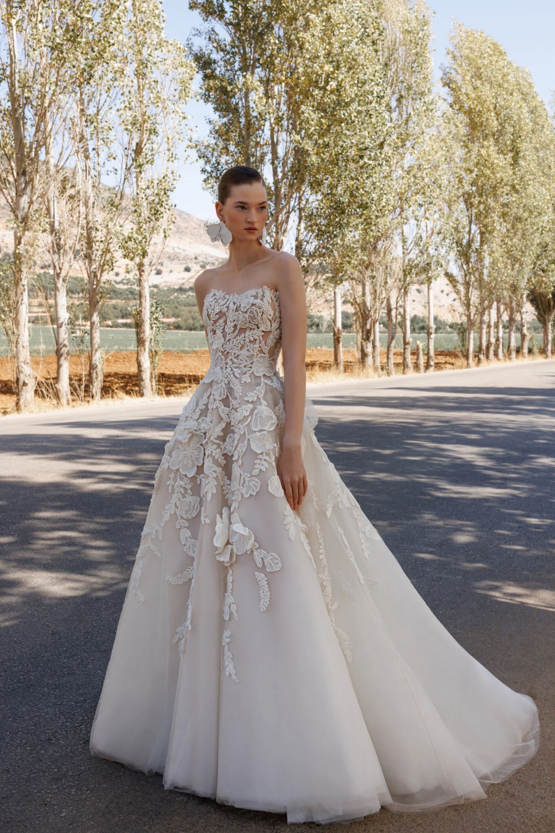 Please note that the images shown are a selection of gowns from the designer's newest collection and do not reflect our entire showroom offering. Please schedule an appointment to view more of the collection.