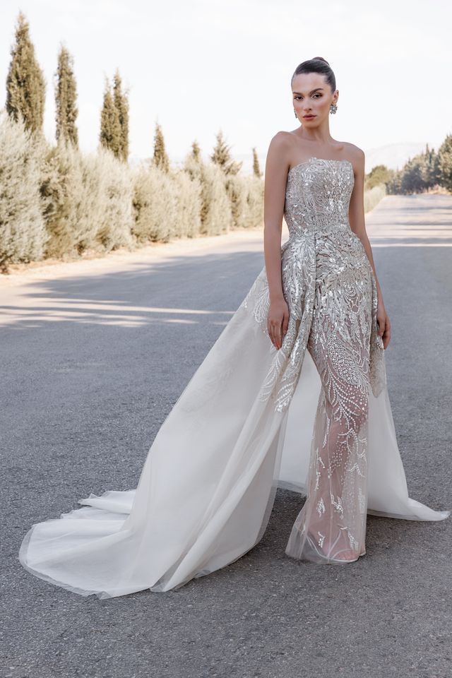 Saiid Kobeisy's gowns embrace grandeur with unapologetic artistry. These dresses are rich with ornate embroidery, sculptural details, and sweeping forms designed to command attention. A bride in Saiid Kobeisy does not simply enter a room; she owns it. Every feature is crafted to create drama, from voluminous skirts to luxurious textures. Brides who choose this path often want their wedding to feel cinematic, with gowns that deliver impact from every angle. These designs are especially striking in lavish ballrooms, historic venues, or celebrations built around opulence.