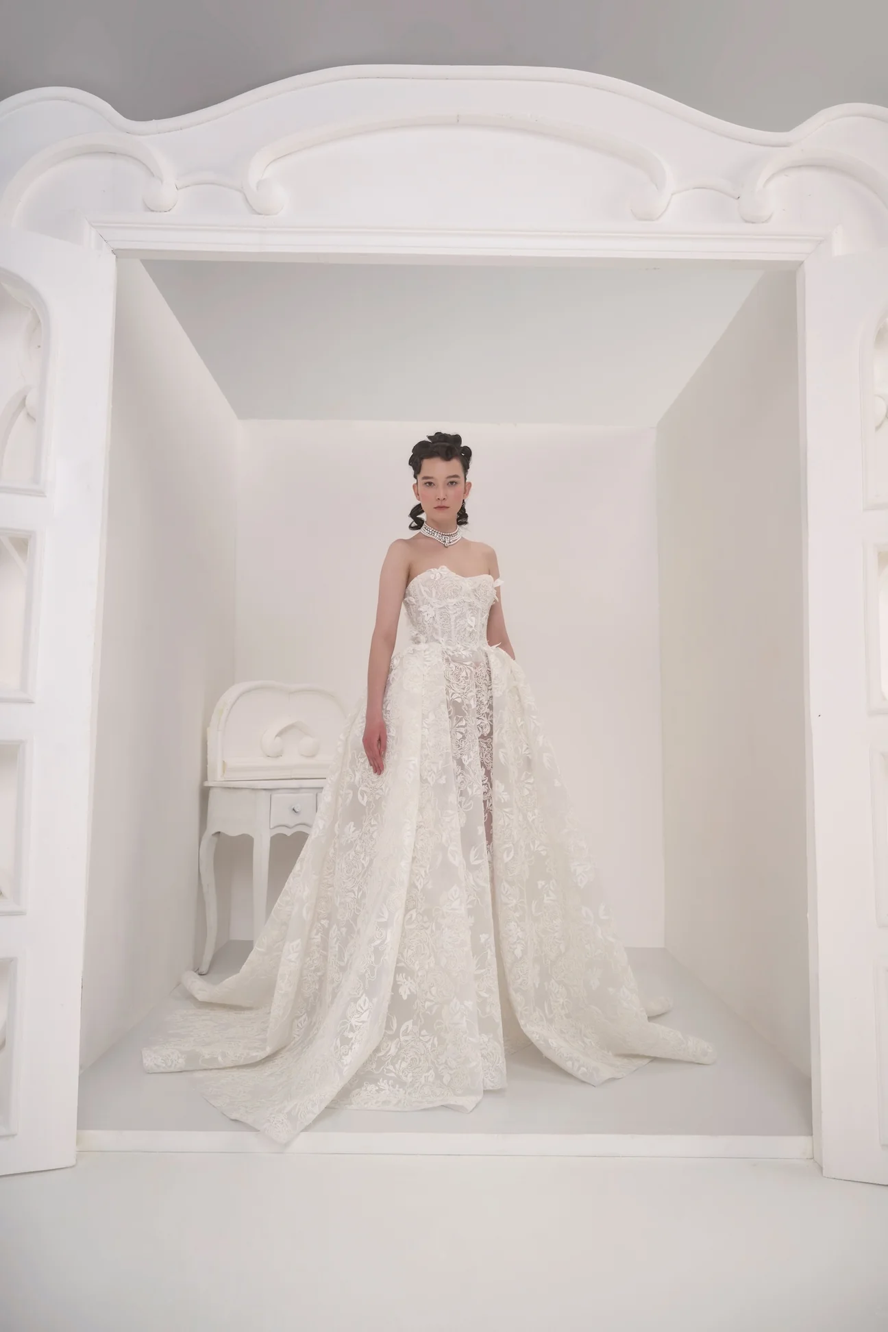 Verdin gowns speak through shape, line, and proportion. Their elegance lies in restraint. Clean contours, fluid draping, and architectural tailoring create a canvas that enhances the bride herself rather than overshadowing her. This style is for women who want to look effortlessly elegant without excess embellishment. Verdin gowns also offer versatility; they adapt beautifully to settings such as garden ceremonies, chic city spaces, or minimalist halls. The simplicity ensures timeless appeal, making them as captivating years from now as they are on the wedding day.