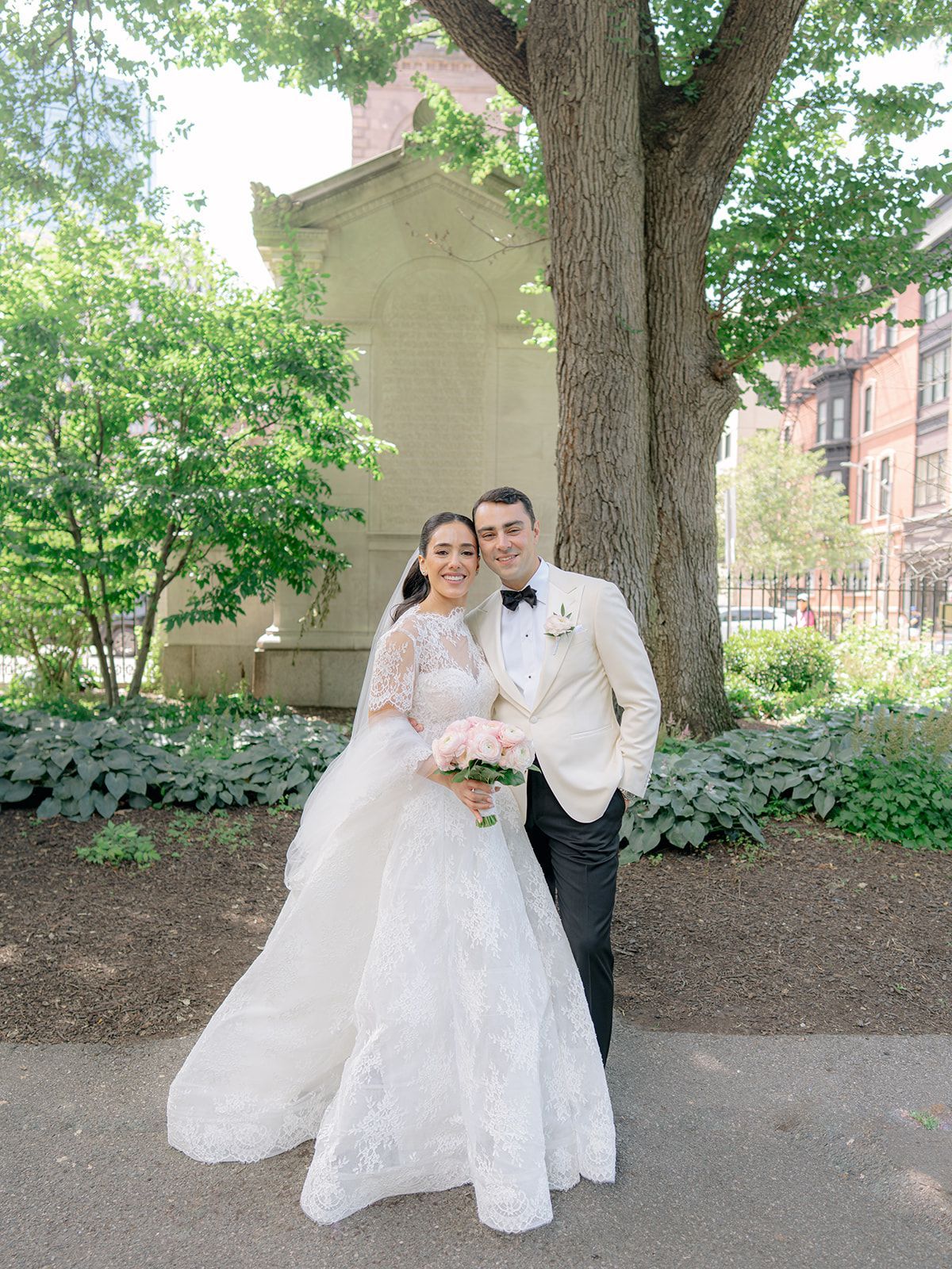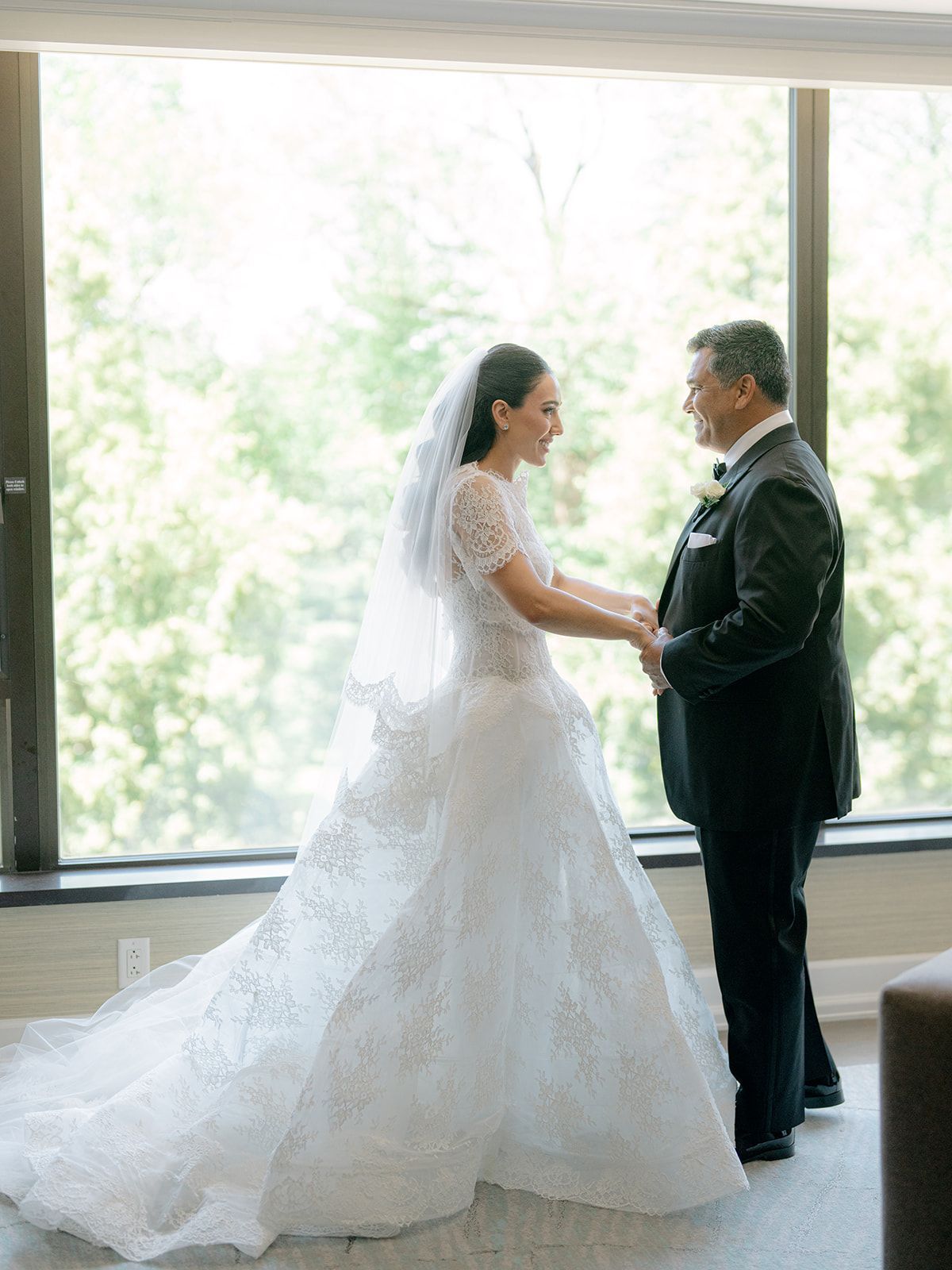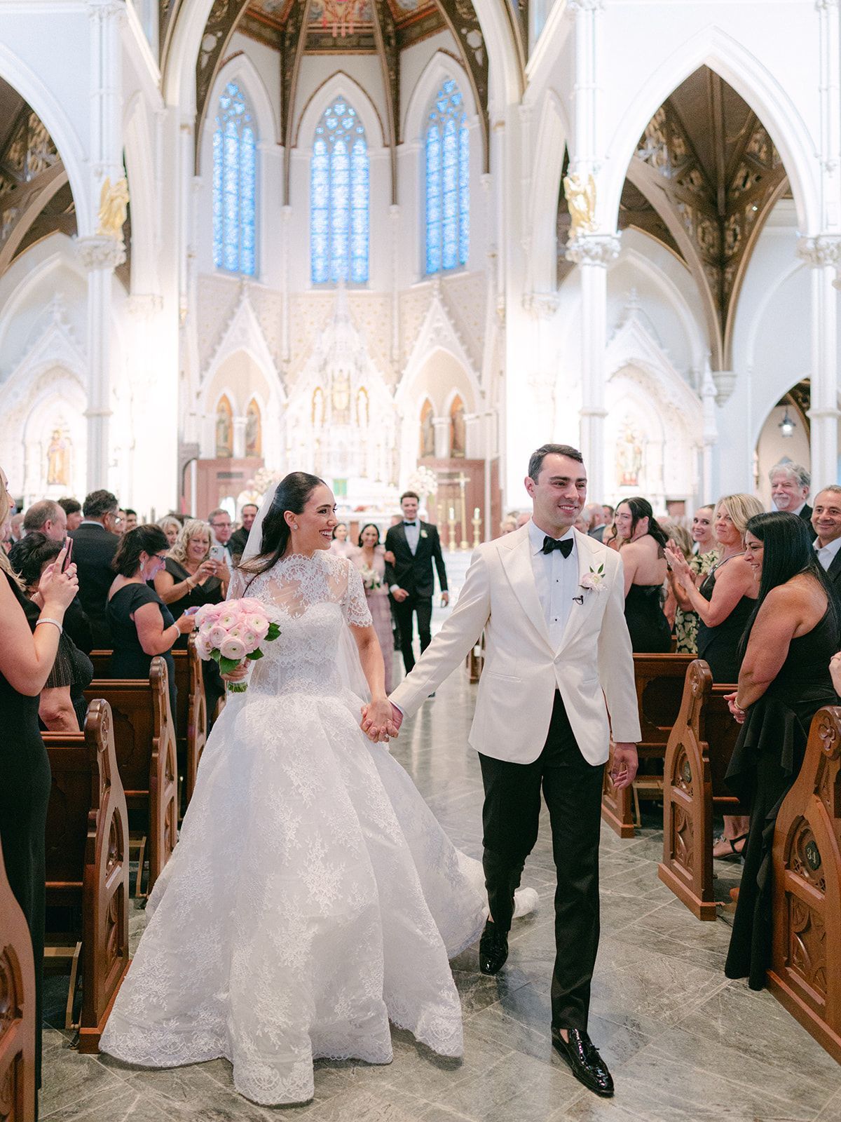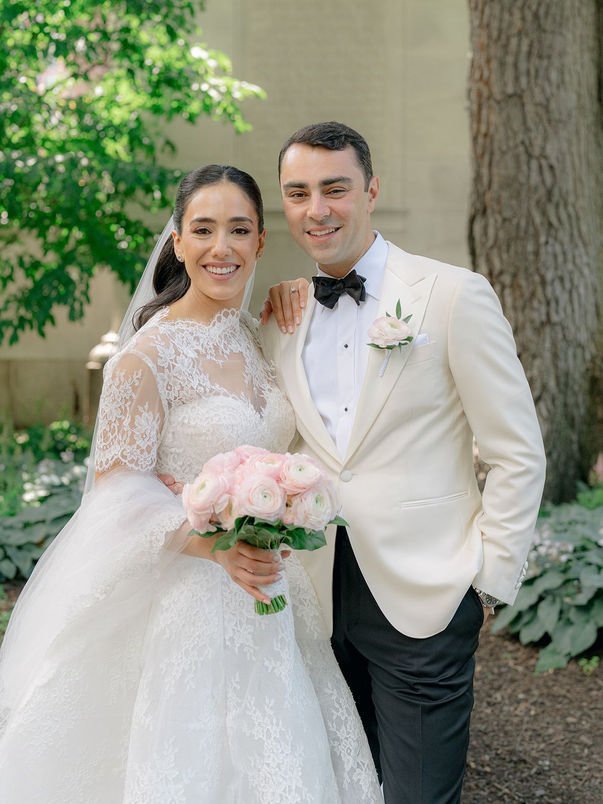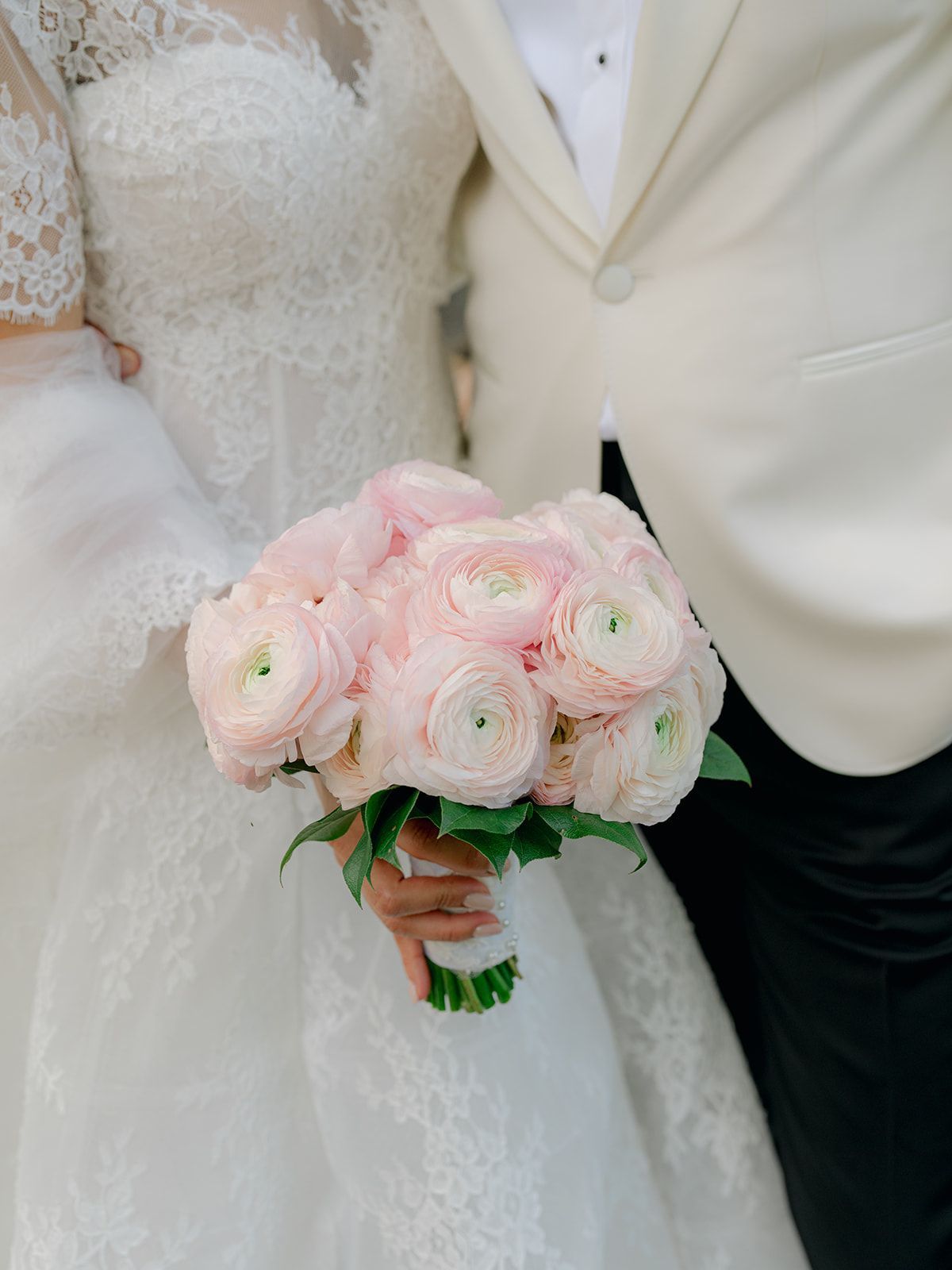 Congratulations to our gorgeous bride Sonia! Sonia chose the Monique Lhuillier strapless sweetheart lace ballgown, “Alexandra”. She opted for a custom-made matching lace jacket with button detail closure made by our L’elite Atelier. Sonia finished her look with a cathedral veil with blusher with the same lace detail. All photography is courtesy of Lisa Rigby Photography.