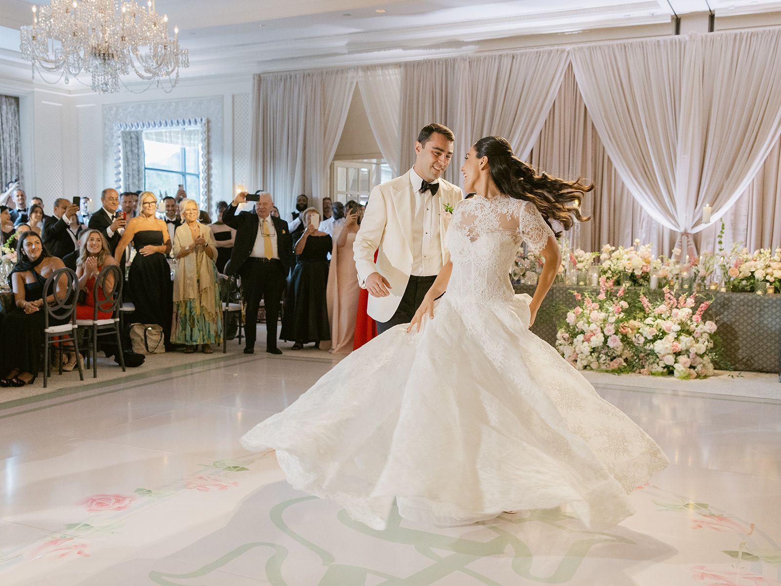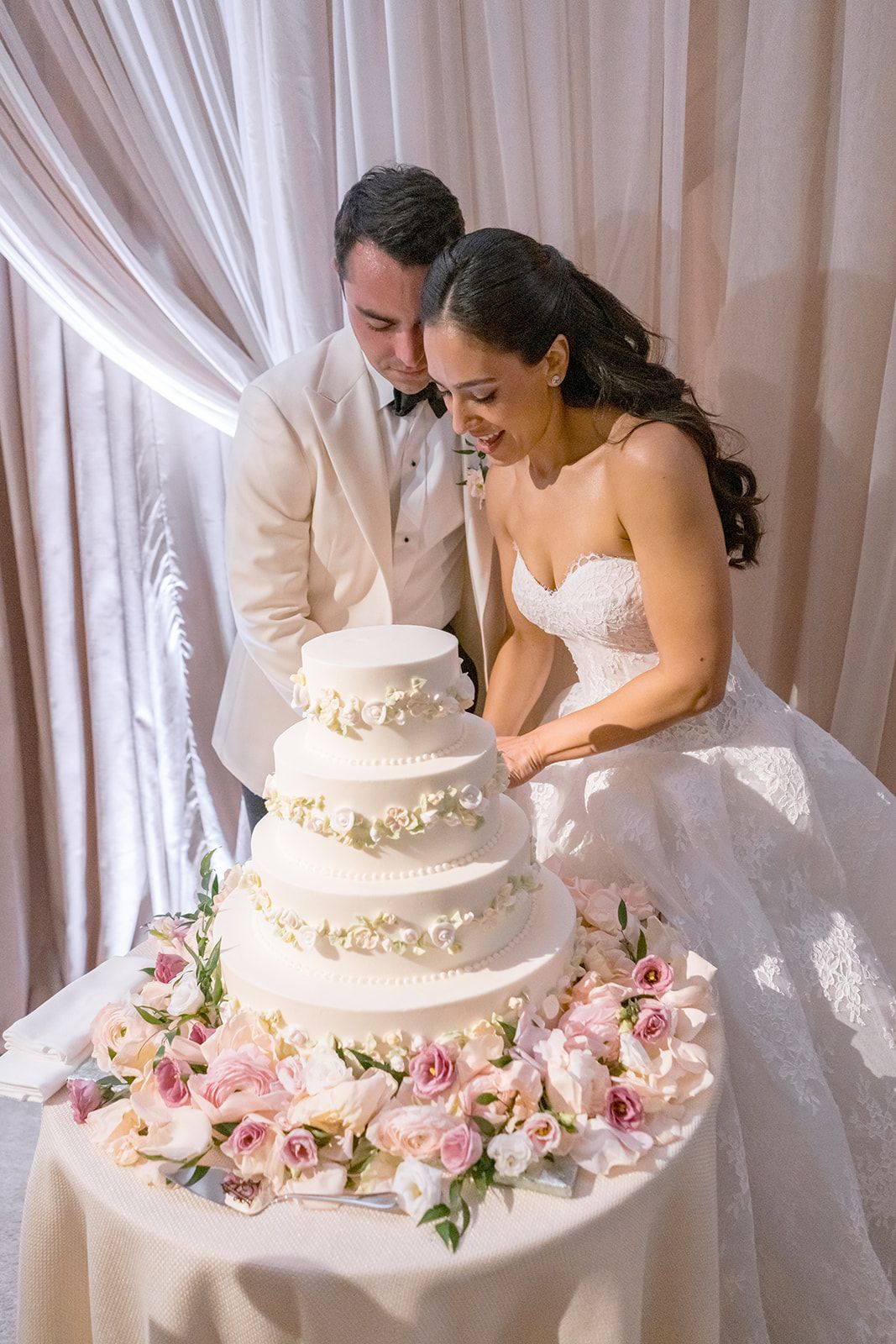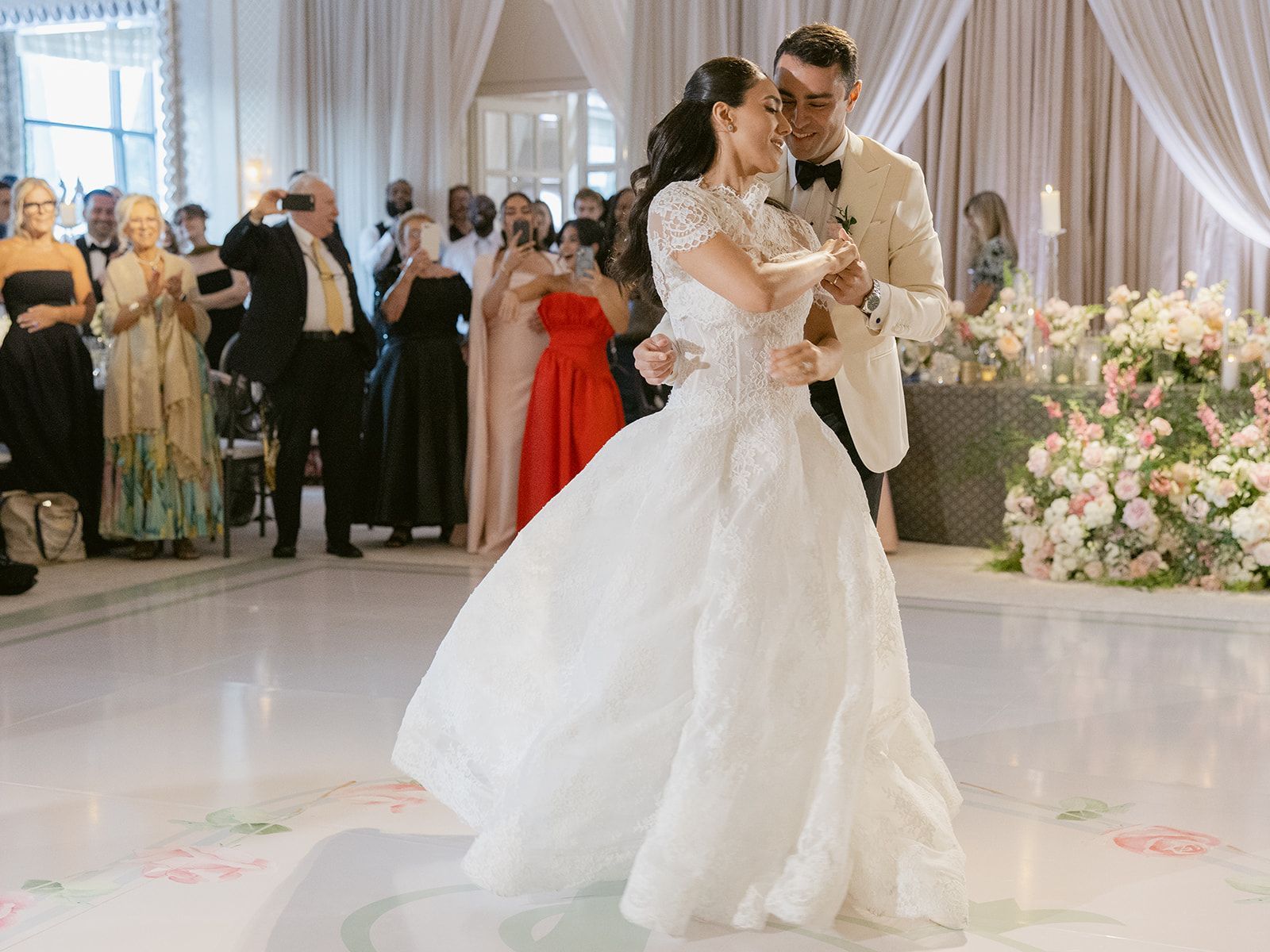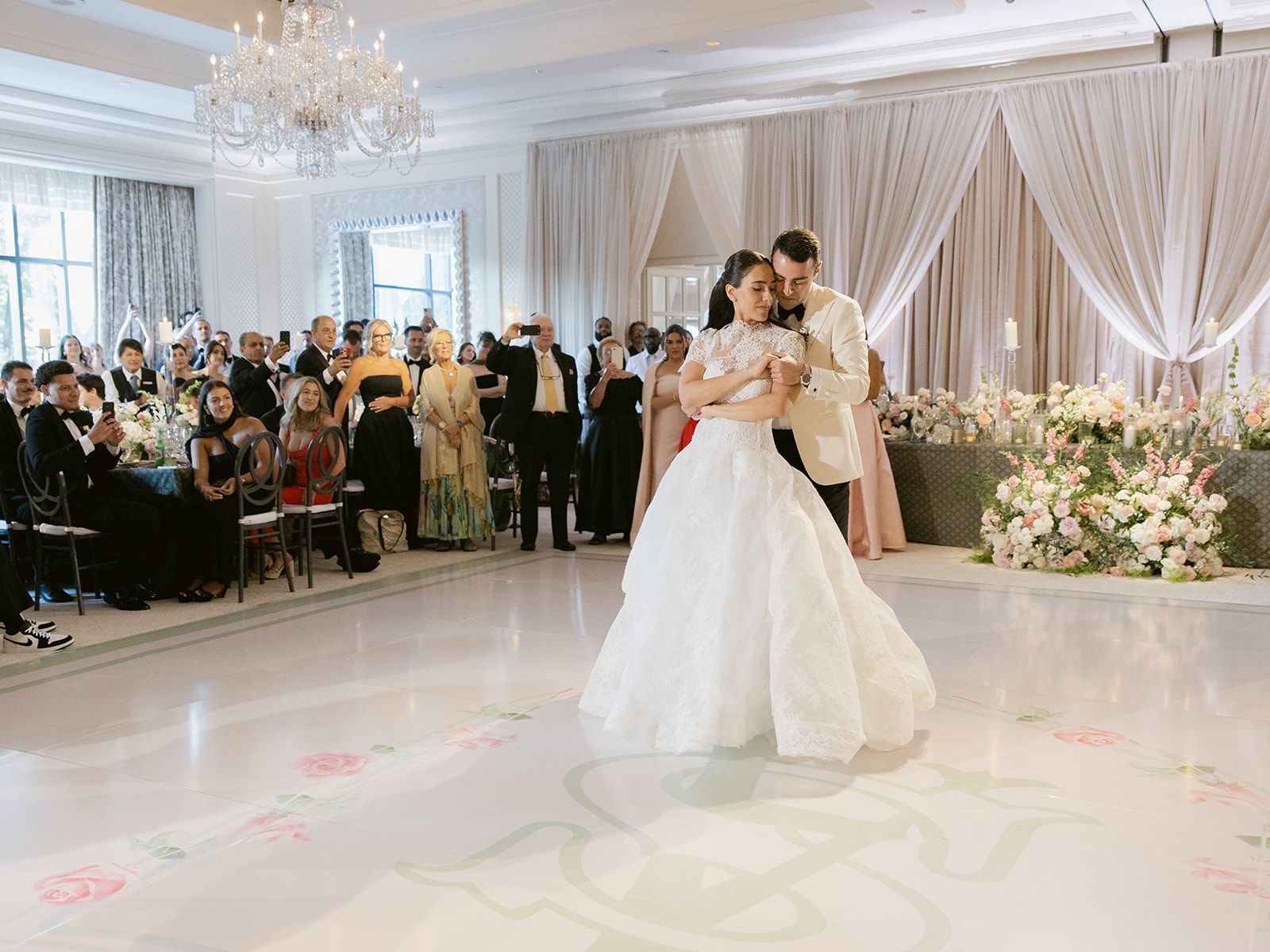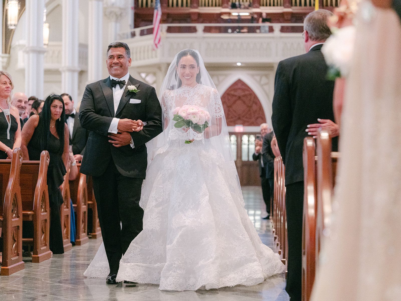 Congratulations to our gorgeous bride Sonia! Sonia chose the Monique Lhuillier strapless sweetheart lace ballgown, “Alexandra”. She opted for a custom-made matching lace jacket with button detail closure made by our L’elite Atelier. Sonia finished her look with a cathedral veil with blusher with the same lace detail. All photography is courtesy of Lisa Rigby Photography.