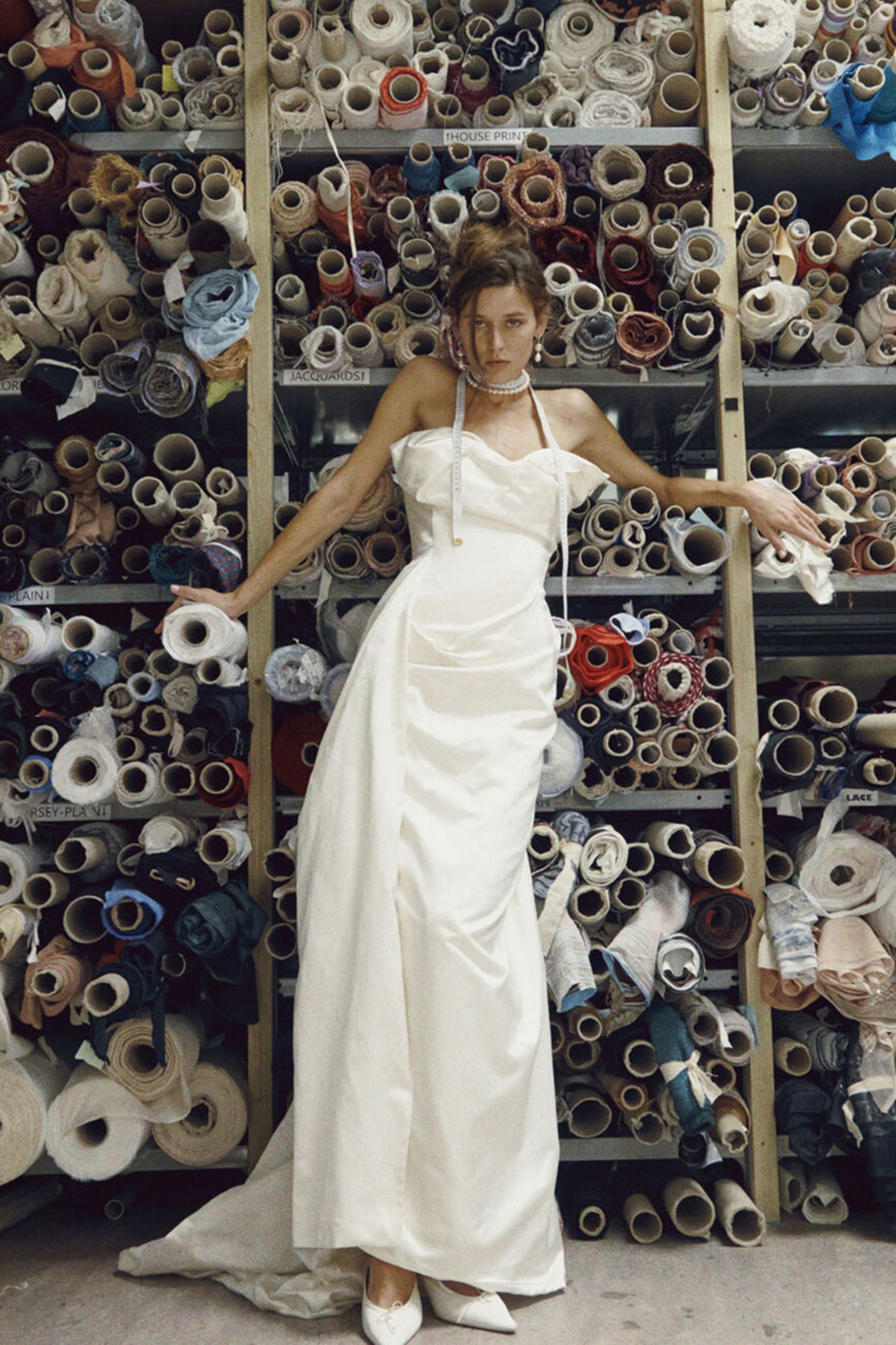 The Couture collection is a fully bespoke experience, where brides work closely with the Westwood team to create a gown tailored to their vision. This process includes personalized sketches, fabric selection, and expert craftsmanship in the London atelier.