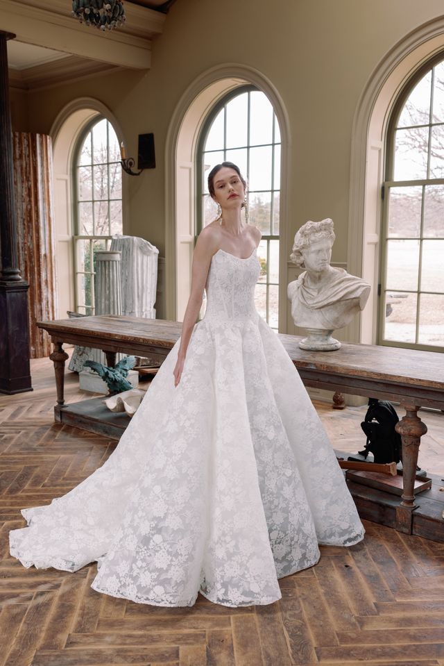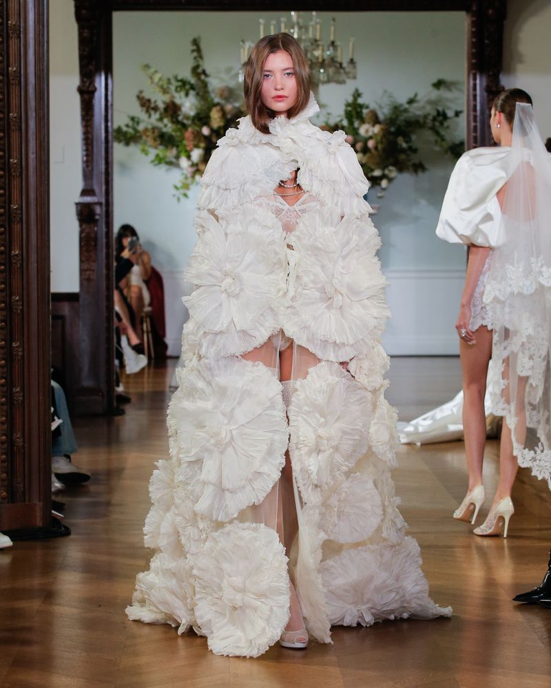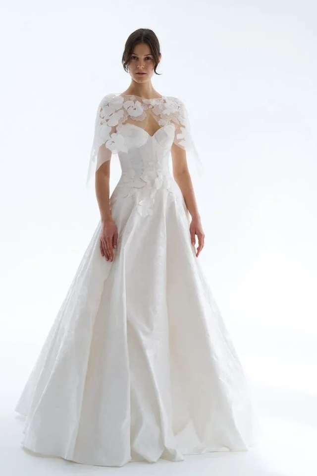 Wedding gown toppers are additional pieces like lace jackets, boleros, or capes that change a gown’s look. They let brides create multiple styles from one dress.